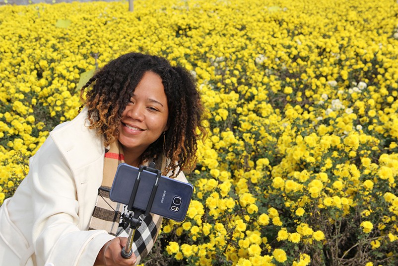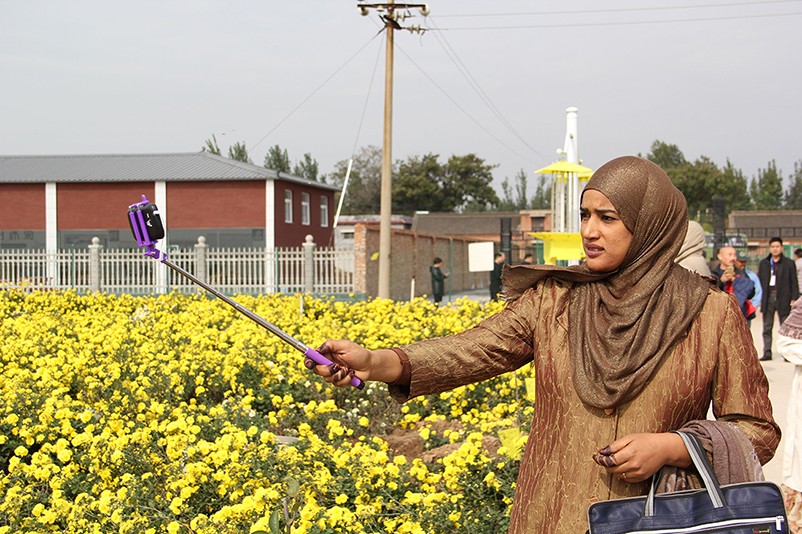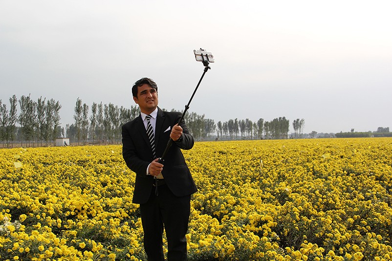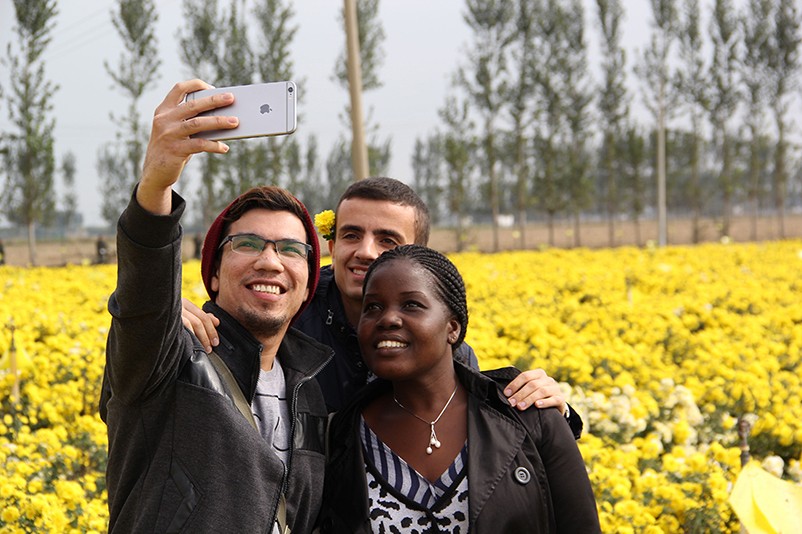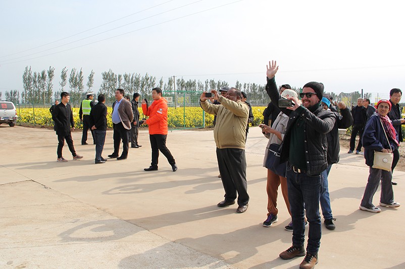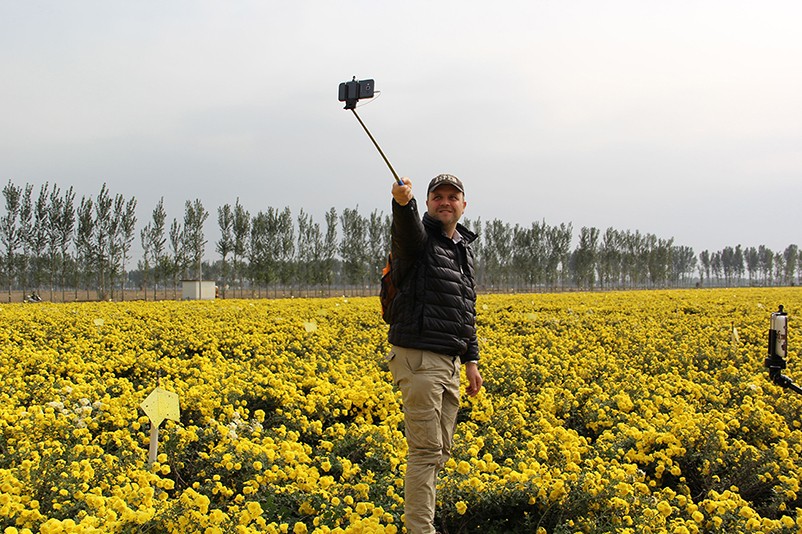 這也在拍,那也在拍,看來這些外國專家對咱們的云臺冰菊很有興趣么~各類膚色的人聚在一起共同賞菊品菊,場面和諧極了,看來不僅藝術(shù)能促進各國間的文化交流,農(nóng)業(yè)照樣有聚集人心的魅力??!