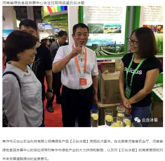 云臺(tái)冰菊不僅凸顯了河南綠色食品大家族、新發(fā)展和新形象,也為本屆博覽會(huì)“綠色理念、綠色生產(chǎn)、綠色消費(fèi)”主題貢獻(xiàn)了一己之力,受到蒞會(huì)領(lǐng)導(dǎo)、廣大市民、國(guó)內(nèi)外客商和各類媒體的廣泛關(guān)注和高度稱贊。